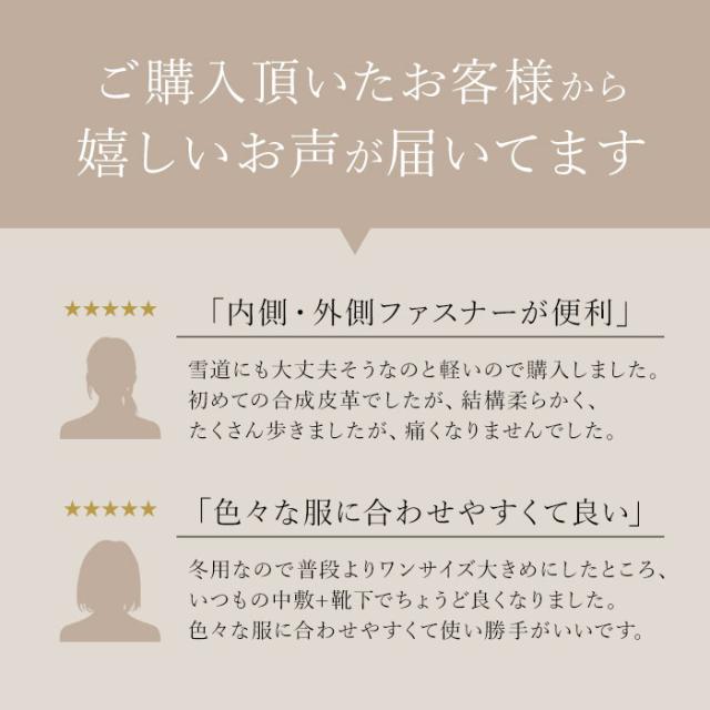 | 商品説明 | ・アクティブに動けてノンストレス◎寒い季節にぴったりな、Pansy(パンジー)のブーツが新登場。 【シンプルなデザイン】 ・表面はシボ感のある合皮素材。落ち着きのある仕上がりで、カジュアルにもキレイめにもマッチ。 【秋冬に大活躍】 ・内側にはふんわり起毛素材を使用。中底に保温効果があり、靴内のあたたかい空気を逃しにくいのがポイント。 【うれしい防水仕様】 ・水深40mm/6時間の防水性◎天気の急変にも対応できて安心。(※完全防水ではありません。) 【いつも快適&清潔】 ・柔らかな中底が歩行時の衝撃を吸収。抗菌防臭加工済みでいつも清潔◎ 【幅広の4E設計】 ・ゆったりと締め付け感なく履ける4E相当の幅広仕様。 【足入れがスムーズ】 ・両サイドにジップ付きで、着脱も簡単。脱ぎ履きが必要なシーンでも慌てない! 【防滑仕様のアウトソール】 ・底面に細かな凹凸が刻まれており、濡れた路面でも滑りにくく安全。 【歩きやすさばっちり】 ・重さを感じにくく、つま先にかけてやや上を向いた屈曲性のあるつくり。つまづきにくく蹴り上げやすいので、安定感のある歩行をサポート。 【選べるカラー】 ・どんなコーデにも馴染みやすいカラーバリエーション。1足持っていれば、大活躍間違いなし☆ |
