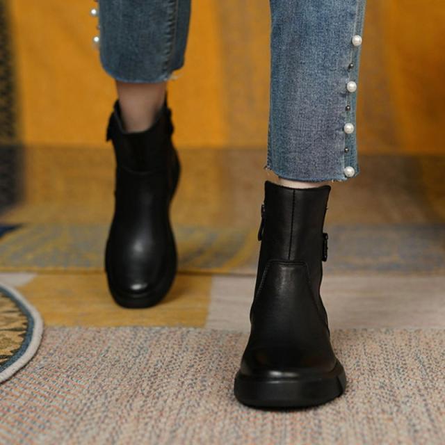 レディース ショートブーツ PUブーツ 厚底 ローヒール パンプス レザー カジュアル 保温 春 秋 冬 コーデ 防寒 お洒落 カジュアル 無地