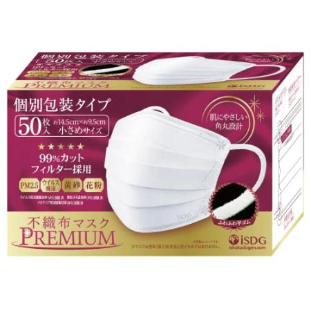 ISDG 医食同源ドットコム 不織布マスクPREMIUM 50枚入り 個包装 小さめ