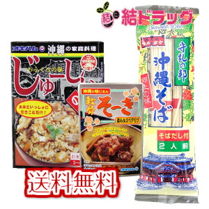 |沖縄そばセット マルタケそばだし付き2食・軟骨そーき(ゴボウ入)165g・ じゅーしぃの素180g|【お買い上げ前にお読みください】※パッケージデザイン等が予告なく変更される場合もあります。