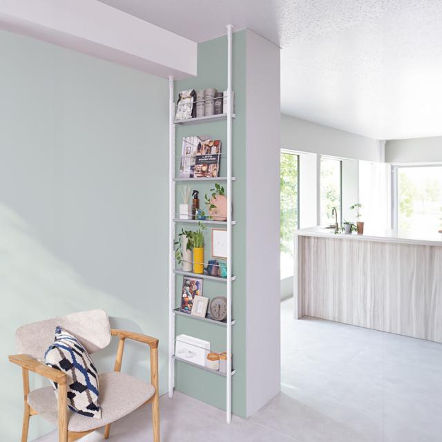 使用イメージ(ア)ホワイト 【リビングにも】突っ張りパイプの長さが左右で変えられ、天井梁のある場所にも設置可能。 ※写真は幅55cmタイプです。