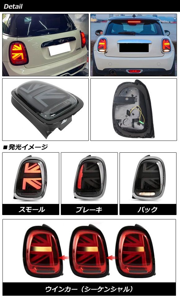 LEDテールランプ MINI(BMW) F55/F56/F57 前期 2014年〜2018年 カラー3 シーケンシャルウインカー連動 入数:1セット(左右) AP-RF319-COL3