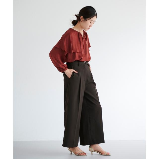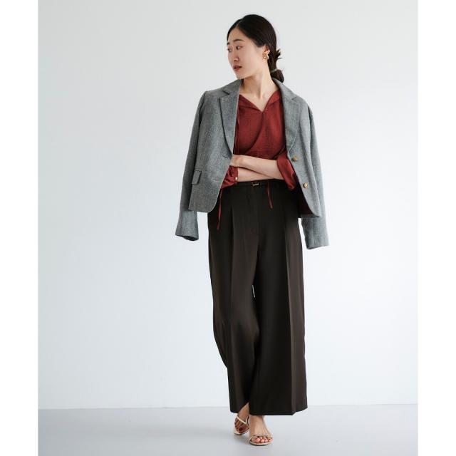 シンプルなワイドパンツやスカートにインするコーディネート。