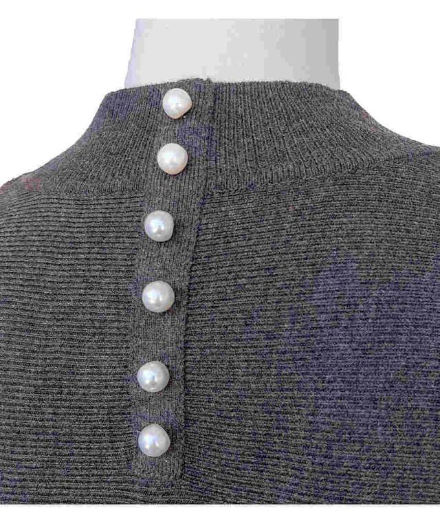 ルイルエブティック(RUIRUE BOUTIQUE)/【M、L】パール釦ハイネックドルマンロングニットワンピ