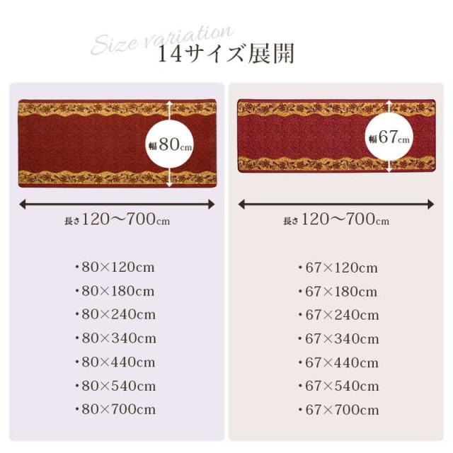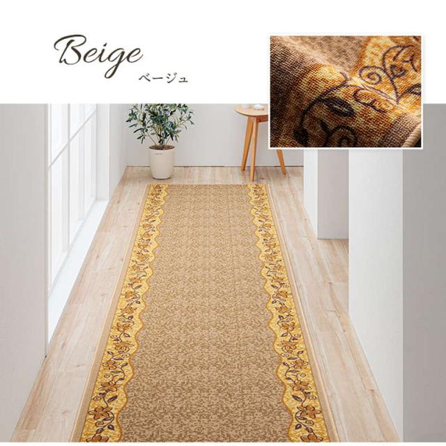 廊下敷きカーペット 廊下用 ロングカーペット 67×240cm クラシカル 花柄 手洗い可能 エレガント 不織布貼り 滑り止め加工 防音 底冷え防止