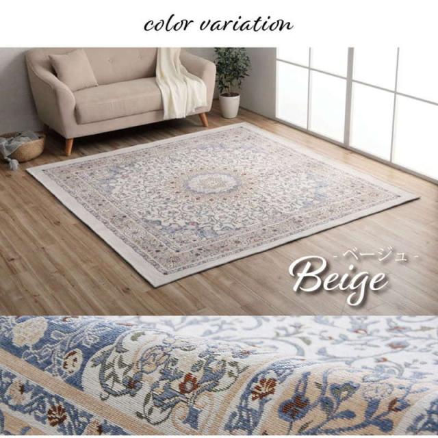 ラグ カーペット 絨毯 正方形 約2畳用 185×185cm おしゃれ ジャガード織 メダリオン柄 滑り止め付き 床暖房 ホットカーペット対応