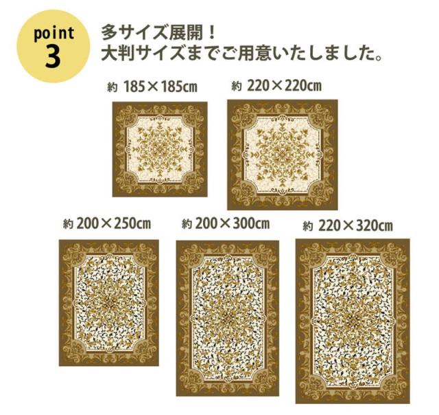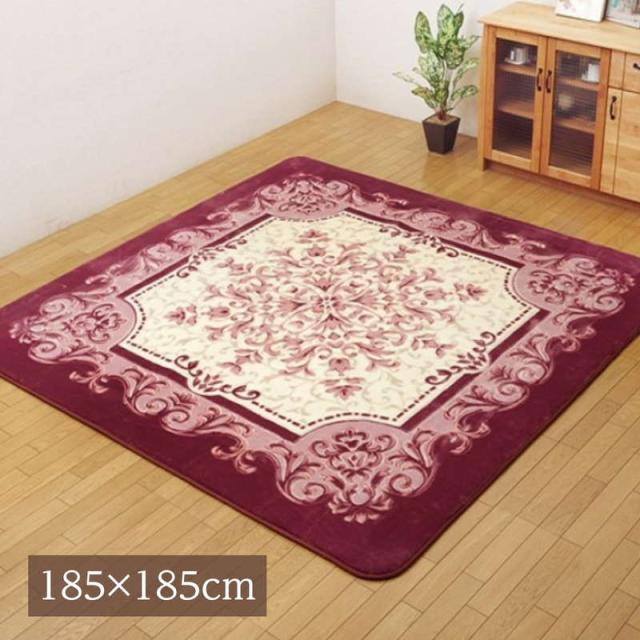 ラグマット カーペット 絨毯 正方形 185×185cm 厚手 ふわふわボア カービング加工 王朝柄 シャルマン ボリュームタイプ こたつ敷き布団