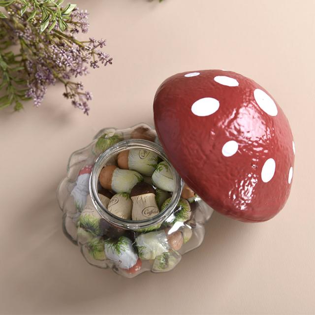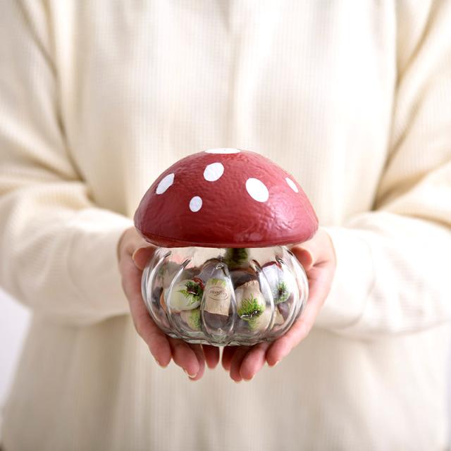 チョコレートを食べ終わったあとは小物入れや、キャンドルやライトを入れてきのこ型のランプとしてもお使いいただけるので、インテリアとしてもお楽しみいただけます。
