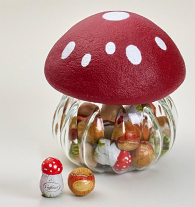 ギフトや贈り物におすすめ。かわいいきのこ型ポットに入った、カファレルのチョコレート詰め合わせ。