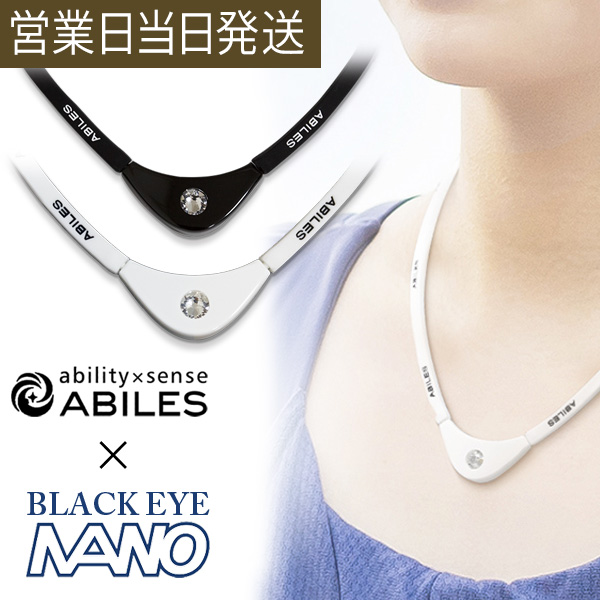 多くのアスリートが愛用し、人間本来の能力に働きかける、最先 端のテクノロジー『ABILES nano』とコラボレーション。体内に流れる 微弱な生態電流に働きかける一般医療機器『BLACK EYE』こりや 痛みをとるだけでなく本来の力を思う存分発揮できます。心身共 にバランスを整え、集中力が必要な場面でも最大限の力を引き出 します。スポーツ時日常使いにもなじむ、スタイリッシュなスリムデ ザイン。