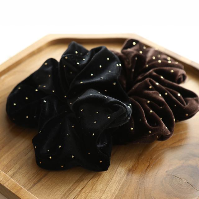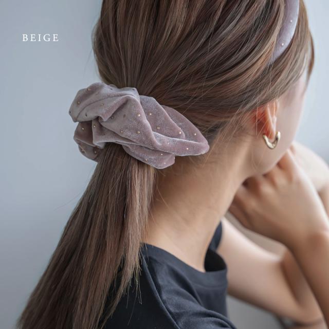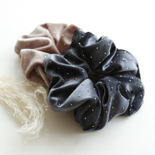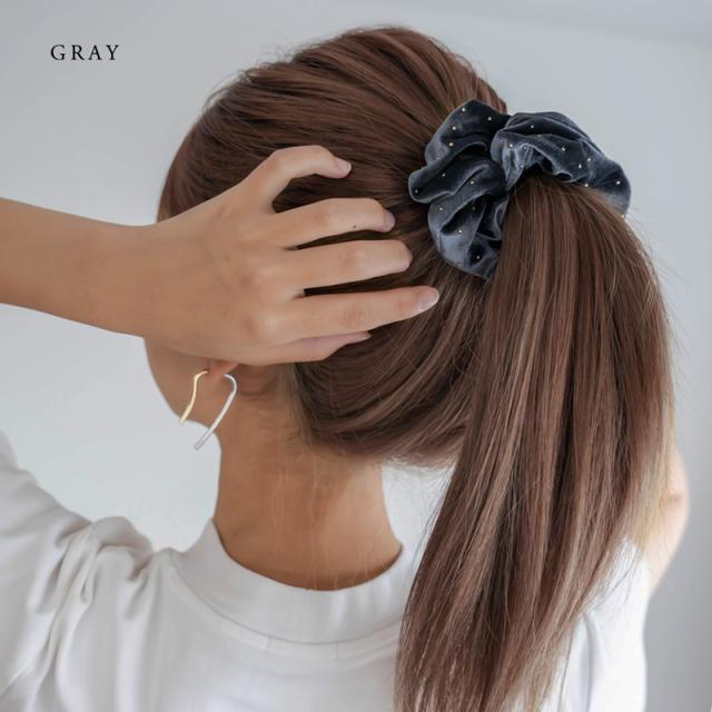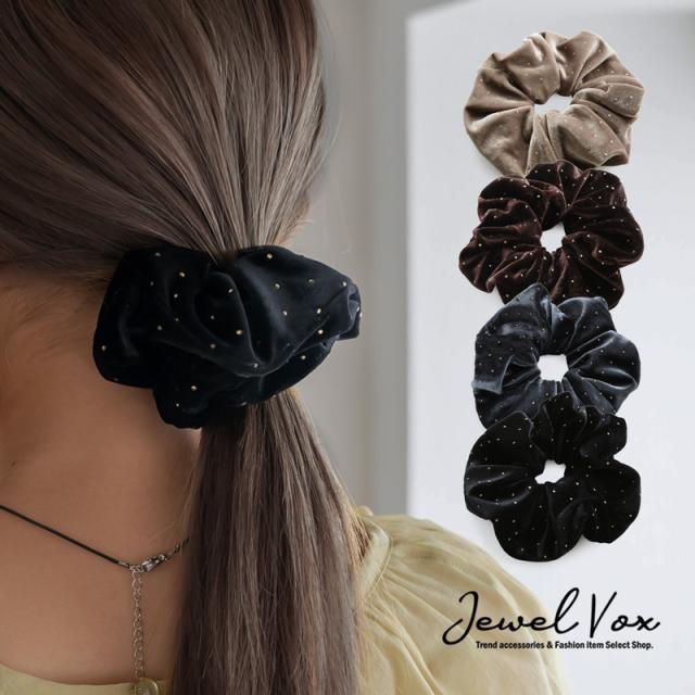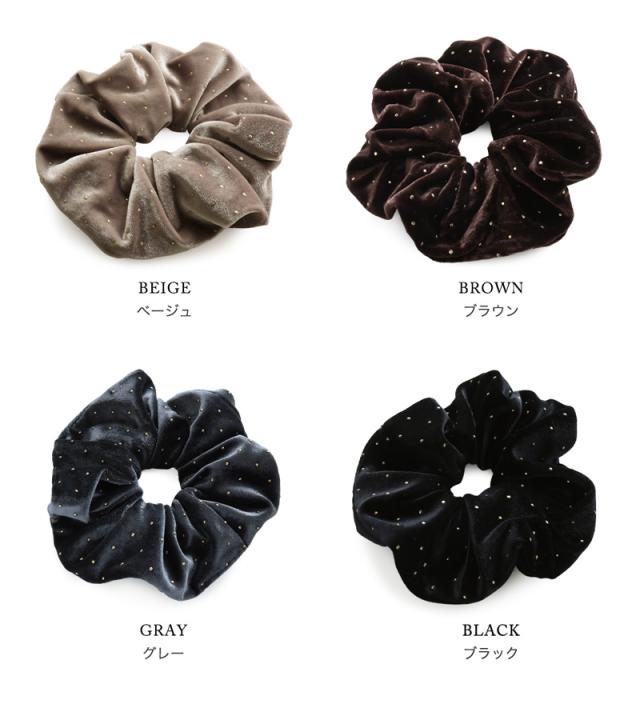 シュシュ ヘアゴム ヘアアクセサリー レディース ベロア風 ドット 秋冬 まとめ髪 大人 シンプル かわいい フェミニン かんたん こなれ オフィス 通勤