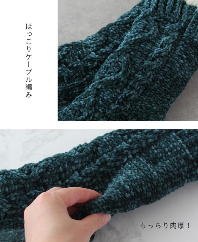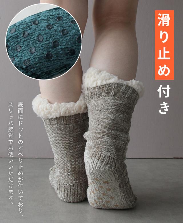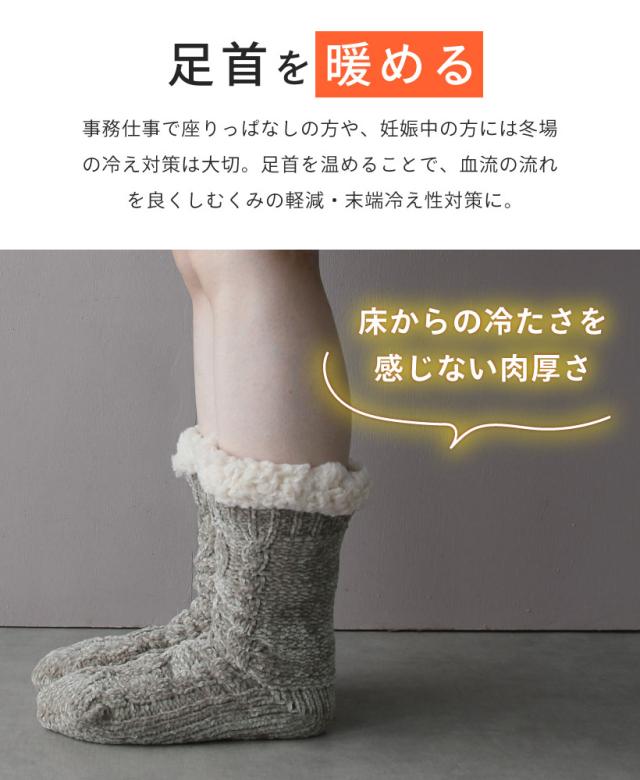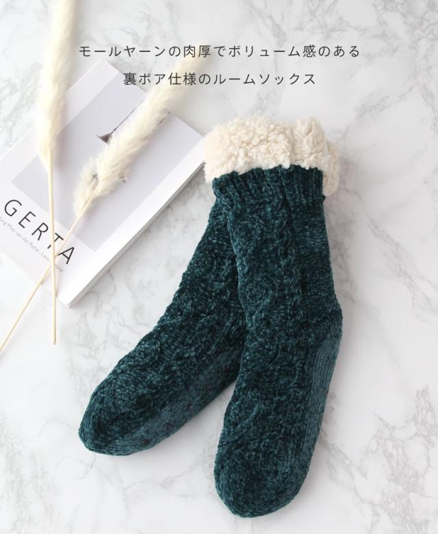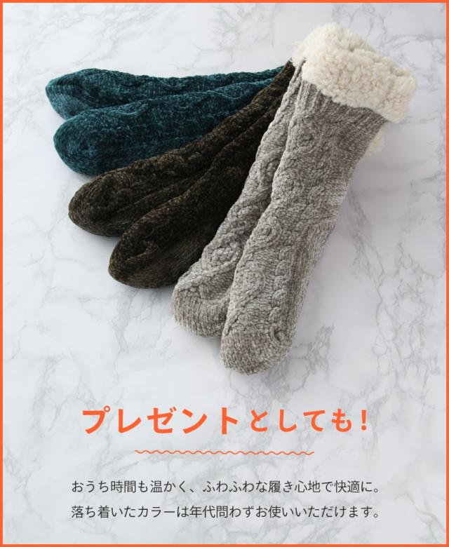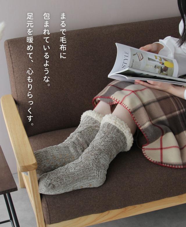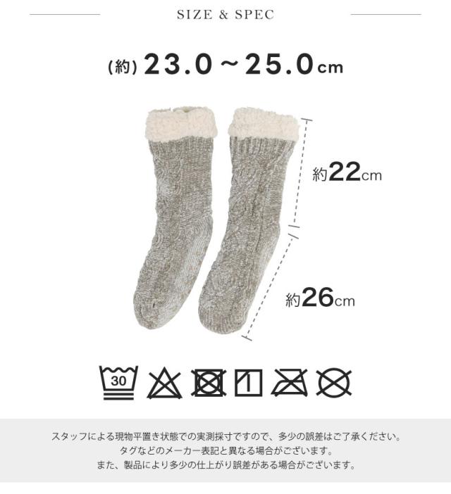 【圧縮メール便1枚のみ送料無料】暖かふわふわ履き心地♪ 内ボア ケーブル編みルームソックス 23-25cm 滑り止め おしゃれ プレゼント ギフト【N】【M】