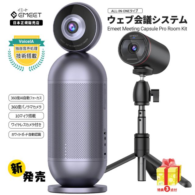 【冬セール 25%お得(10%OFF+15%ポイント) | 2年保証 | 日本正規販売店】 EMEET Capsule Pro Room Kit 360度パノラマ ウェブカメラ カプセル AIフォーカス 自動追跡10つのマイク 高音質スピーカー デュアル 4K 外付けカメラ 会議室用 Webカメラ