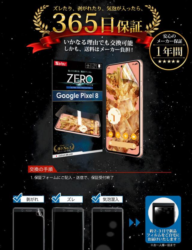 【365日完全保証】 Google Pixel 8 フィルム 湾曲まで覆える 4D 全面保護 保護フィルム フィルム 貼ったら消える魔法のフィルム 気泡ゼロ 2枚セット 極薄0.08mm 究極のさらさら感 衝撃吸収 OVER`s オーバーズ TP01