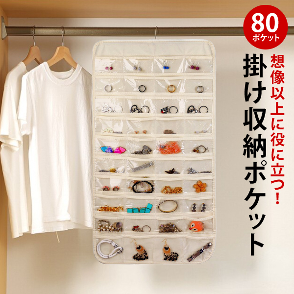 アクセサリー 収納 ポケット 大容量 ウォールポケット クローゼット 吊り下げ式 ポケット収納 ハンガー 両面 80ポケット おしゃれ 壁掛け 透明 クリア ポケット 収納ハンガー 整理 整頓 便利 シンプル シュシュ ピアス イヤリング 収納