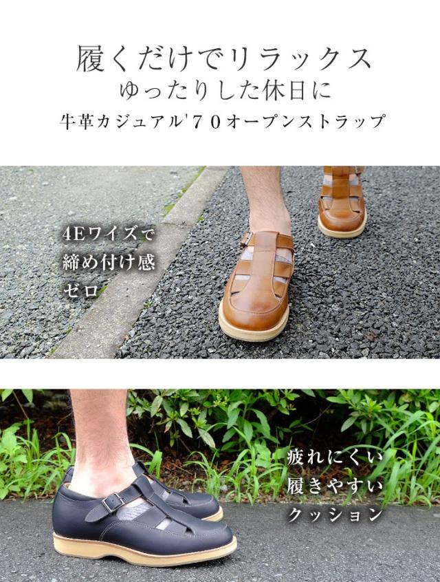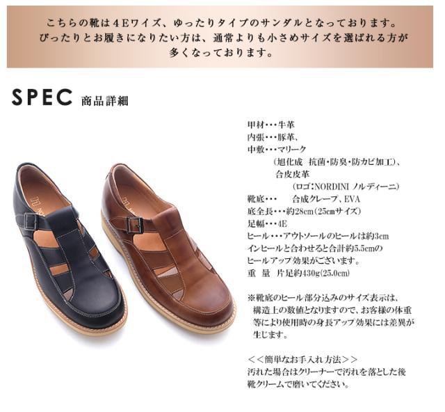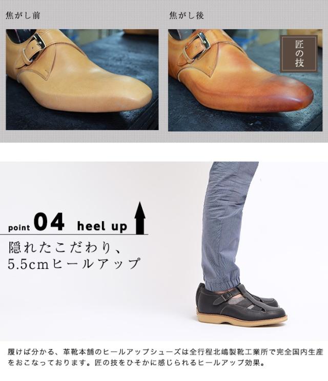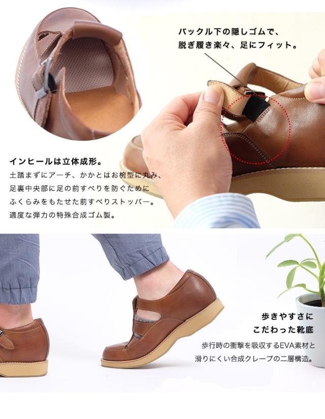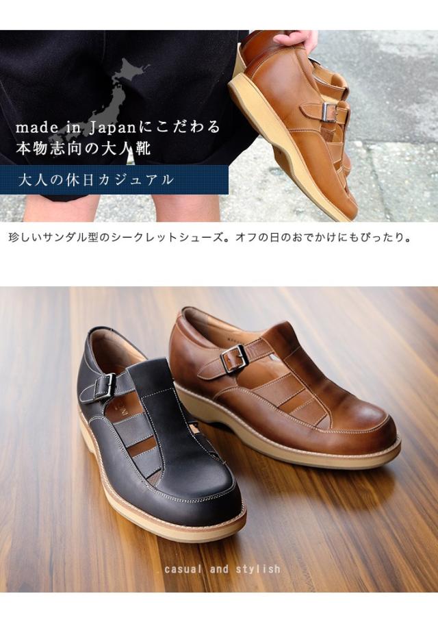 シークレットシューズ サンダル 日本製 牛革 カジュアル70オープンストラップ 5.5cmアップ No.567