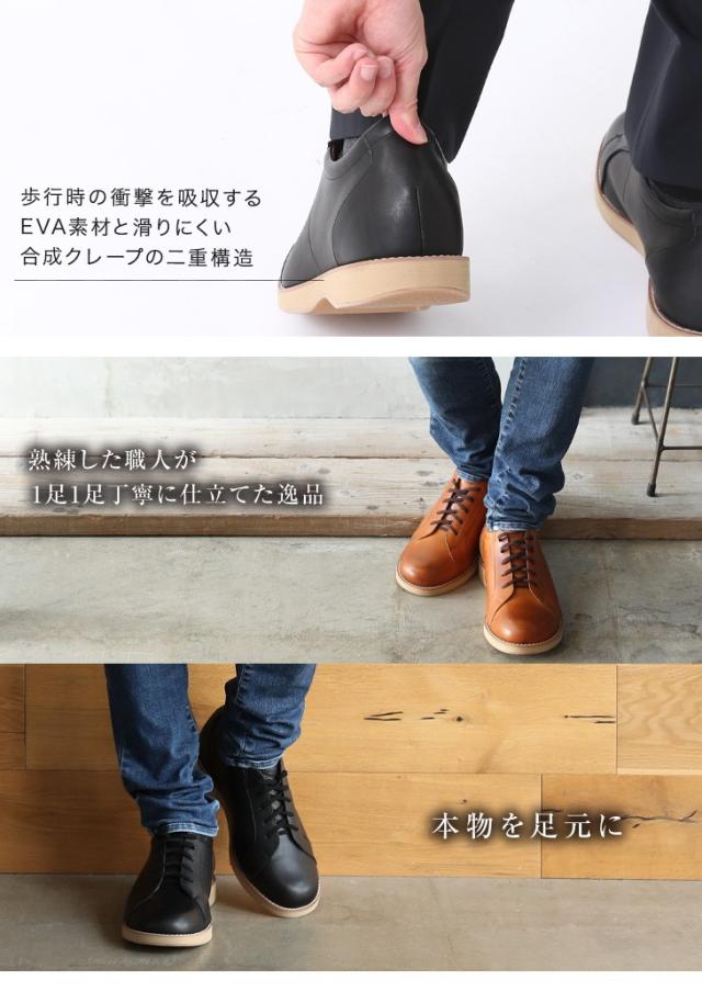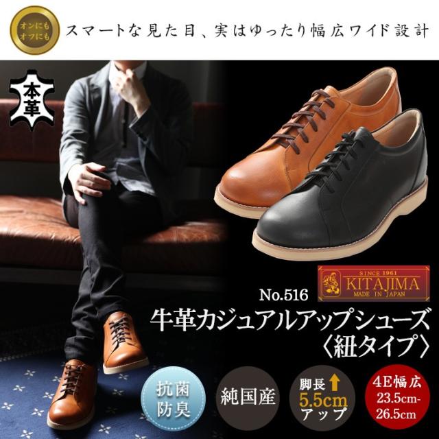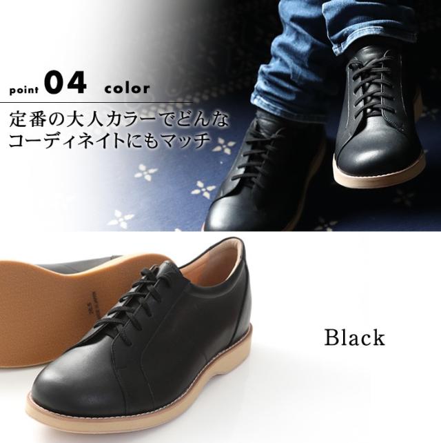 カジュアル シークレットシューズ 本革 メンズ 牛革 カジュアル レザーアップスニーカー 紐タイプ 5.5cmアップ No.516