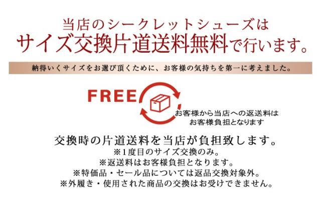 ご購入者の半数がリピーター様!![]() 現在お客様の半数がリピーター様。このリピート率の高さが、私どもが自信を持ってオススメする理由です。シークレットシューズの購入をためらわれている方へ、サイズのご相談やアフターケアなどサービス面でもサポートしていきますので、ぜひ一度お試しください。 | 配送時も安心!シークレットにお届け![]() 配送時、梱包ケースや送り状に「ヒールアップシューズ、シークレットシューズ、 」等の文字は入りません。靴箱にもヒール高さなどの記載はありません。 |