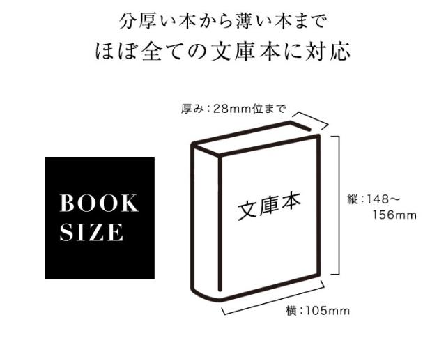 | 対応サイズ | 文庫本(縦148〜156mm×横105mm×厚さ1〜28mm) |