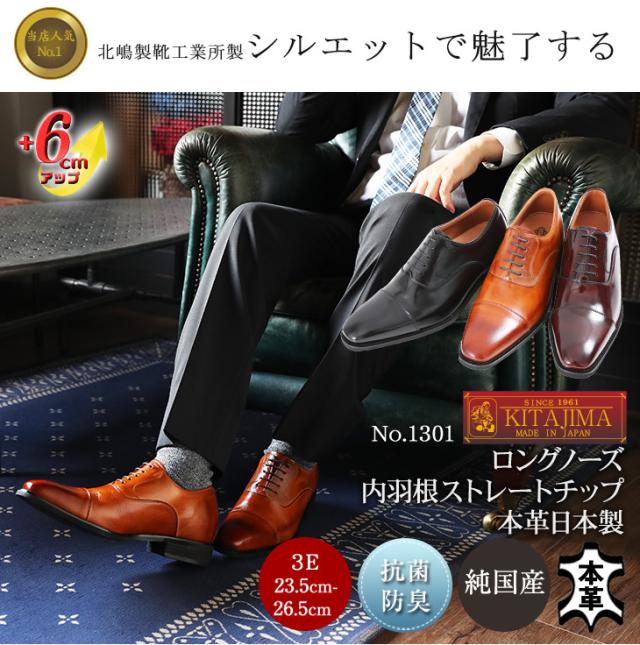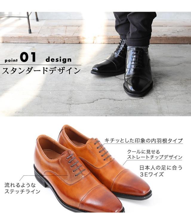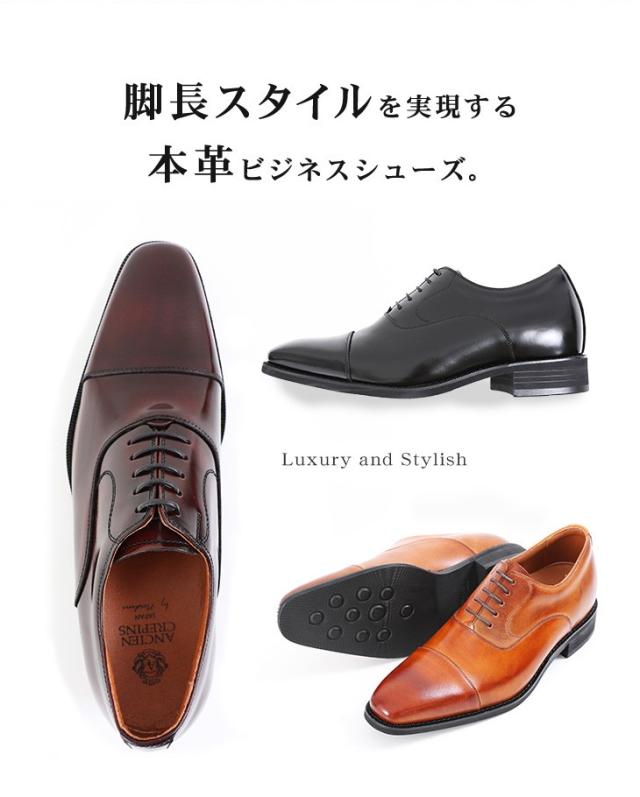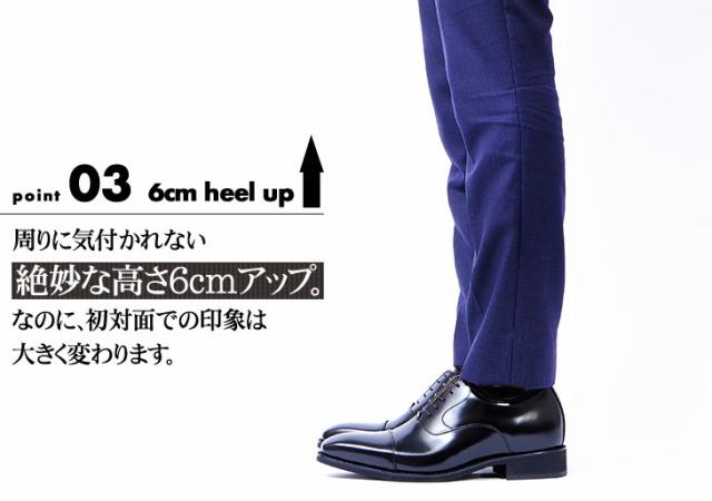 ビジネスシューズ シークレットシューズ メンズ 本革 ストレートチップ ロングノーズ 6cmアップ 身長アップ No.1301