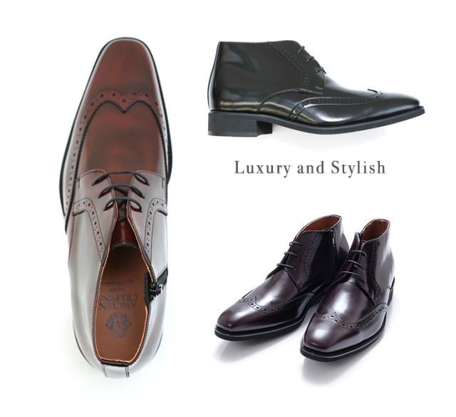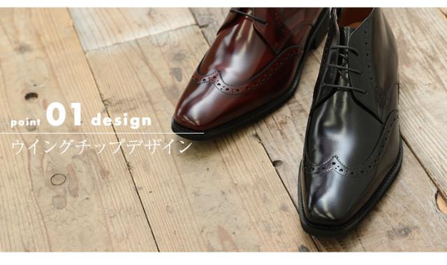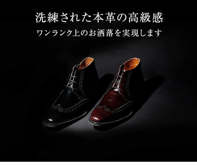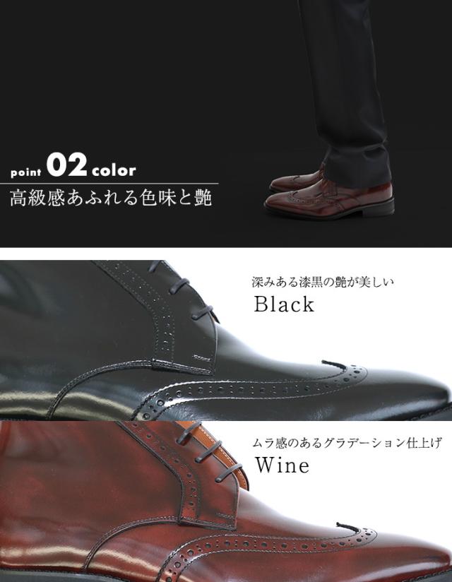 シークレットシューズ No.1302 牛革ウイングチップ ロングノーズブーツ 【6cmアップ】 ビジネスシューズ メンズシューズ 【送料無料】