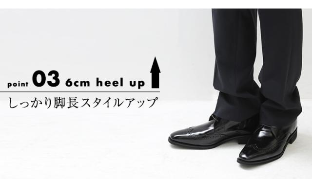 シークレットブーツ ビジネスシューズ メンズ 牛革 ウイングチップ ロングノーズ 6cmアップ No.1302