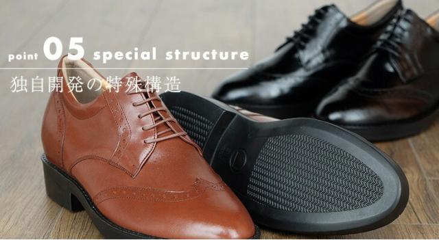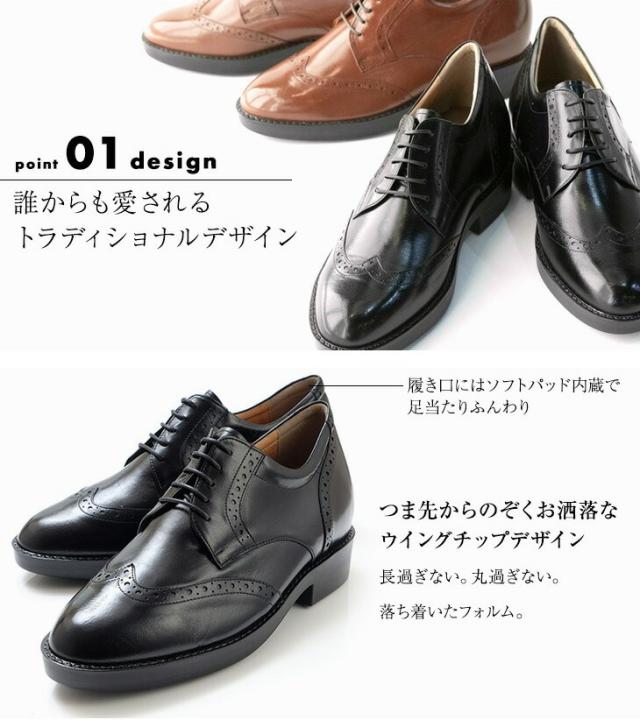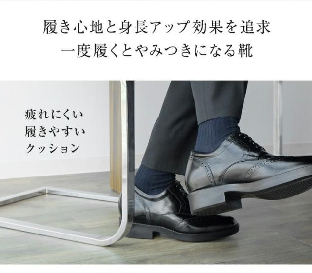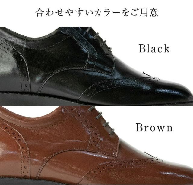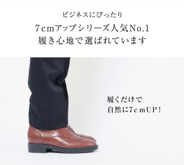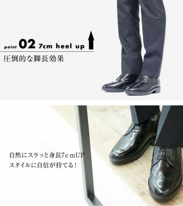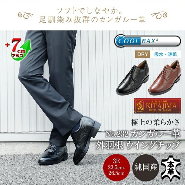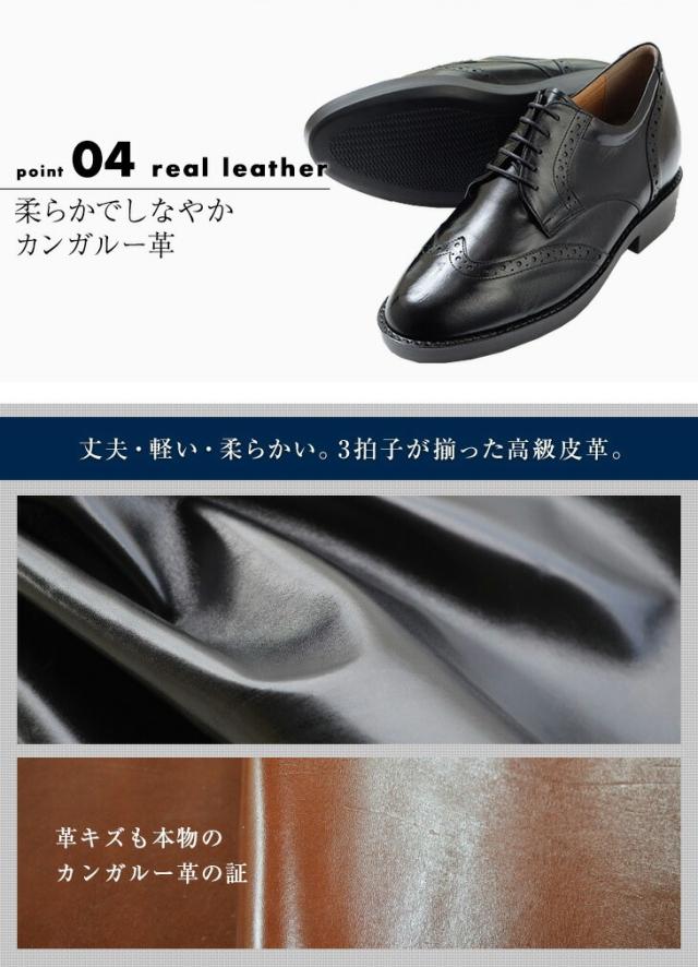 シークレットシューズ ビジネスシューズ 本革 国産 カンガルー革 ウイングチップ 7cmアップ No.232