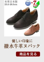 ※5cm、5.5cm、6cm、7cmアップという表記は靴底のヒール部分込みの構造上の数値ですので、