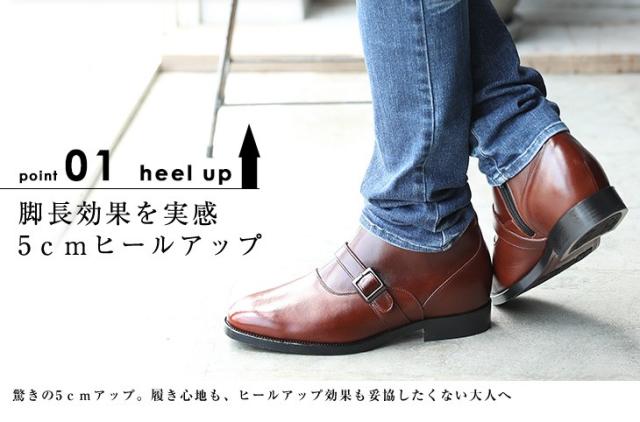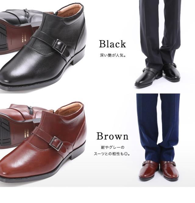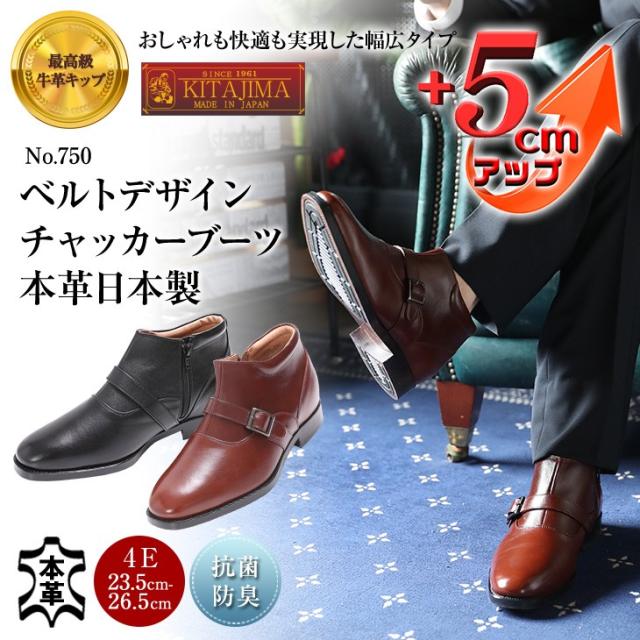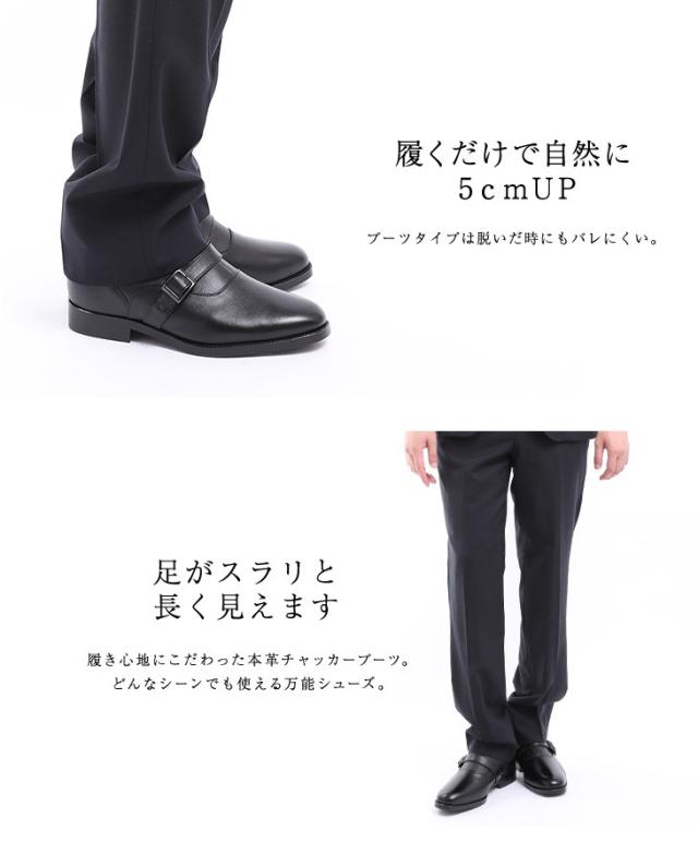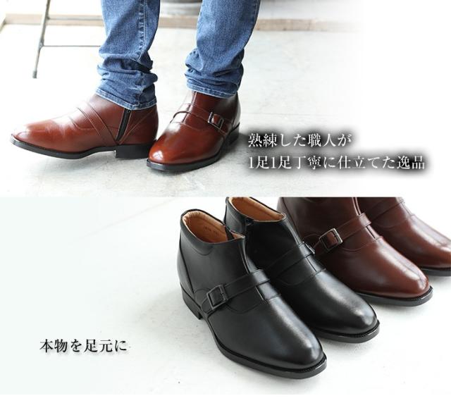 シークレットブーツ ビジネスブーツ 5cmアップ 日本製 牛革 ベルトデザイン チャッカーブーツ No.750