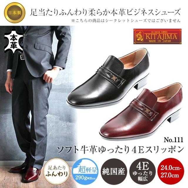 ビジネスシューズ 24cm〜27cmまで 本革 ゆったり 幅広 日本製 4E ワイド ソフト プレーン スリッポン No.111
