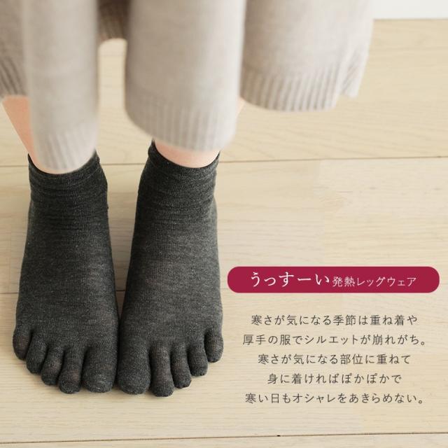 『薄熱5本指ソックス』※メール便可※【5】靴下 ソックス 5本指 足元 インナー インナーソックス 5本指ソックス レッグウェア 薄熱 薄い 防寒 薄手 重ね履き あったか 冷え対策 冷えとり 寒さ対策 日本製 発熱 温活 吸湿発熱 消臭 極薄 吸湿 保温 冷房対策◇