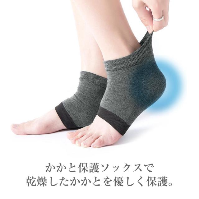 かかと保護ソックスで乾燥したかかとを優しく保護。