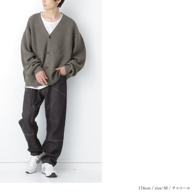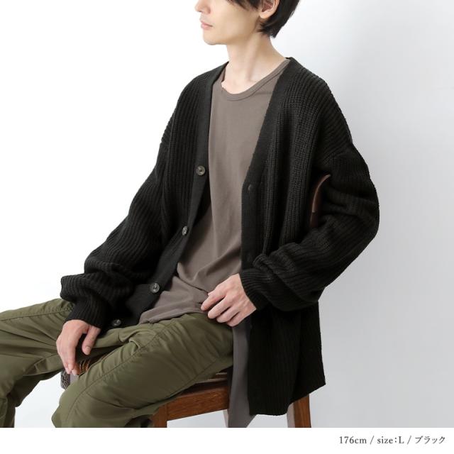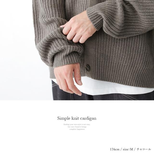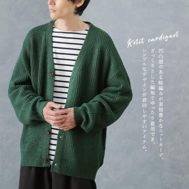 『畦編みニットカーディガン』【メール便不可】【40】[ニット カーディガン メンズ トップス セーター 羽織 長袖 Vネック 畦編み ローゲージ 無地 シンプル カジュアル 重ね着 レイヤード]