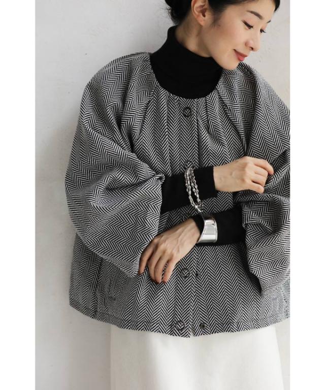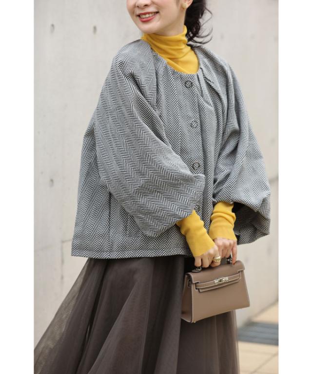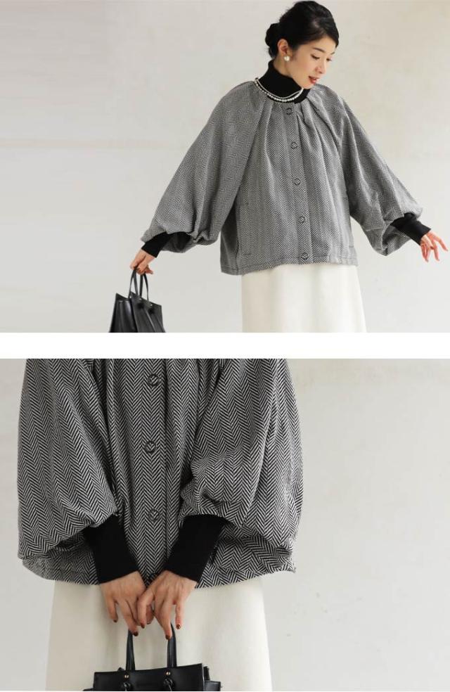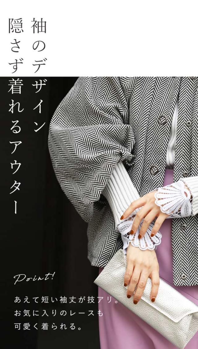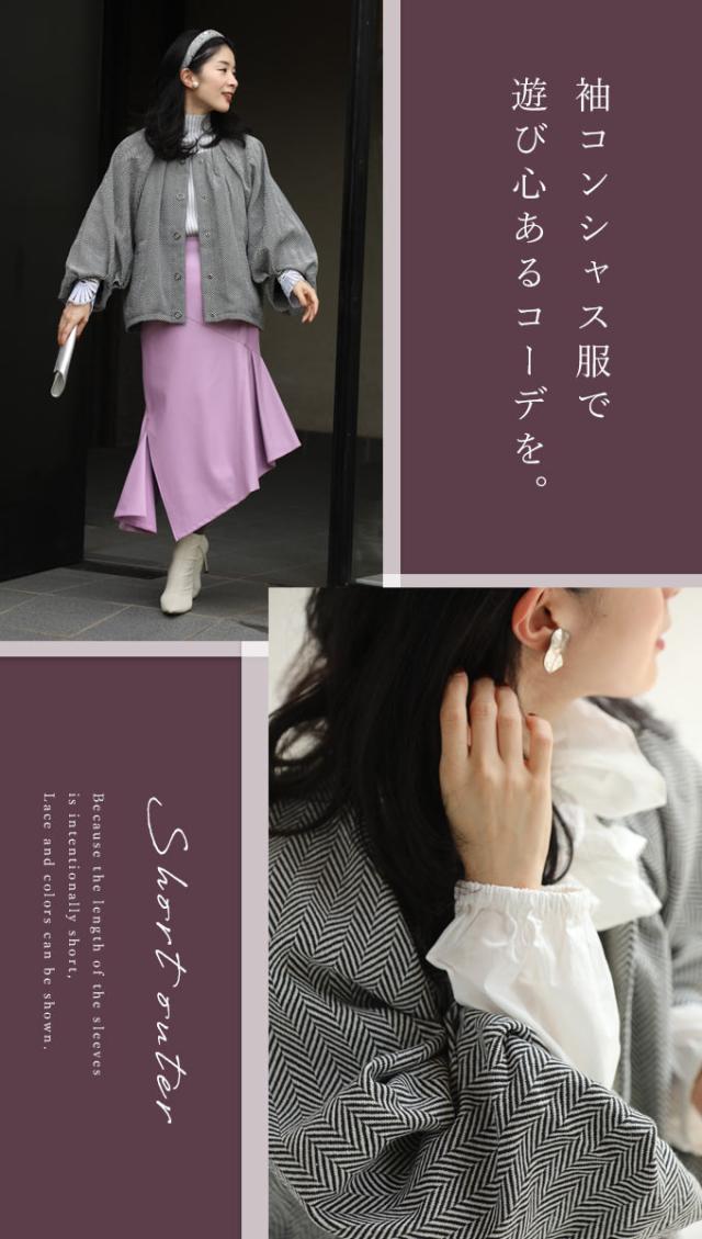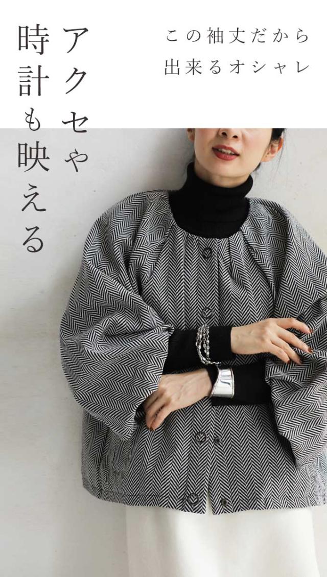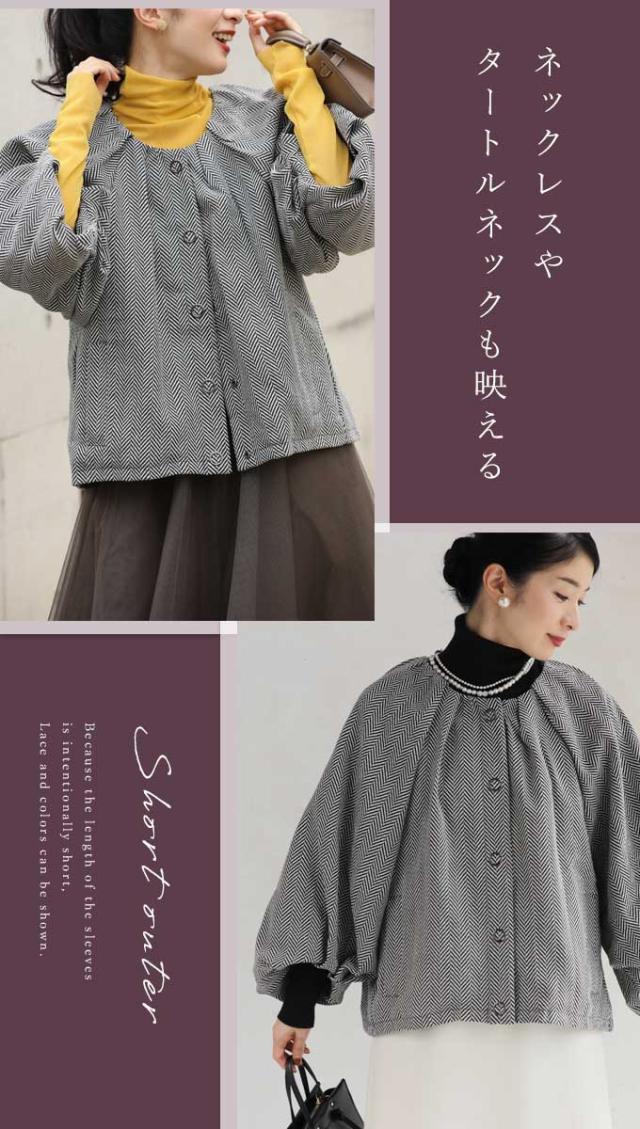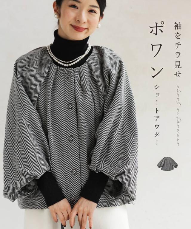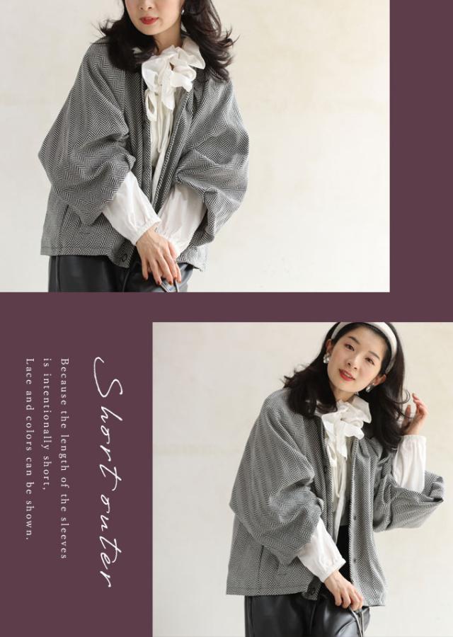 再入荷11月10日 (S~3L対応) 袖をチラ見せ ポワン ショートアウター fbk00026od cawaii レディース ファッション 他にはない アウター ショートアウター 羽織り 七分袖 半端袖 重ね着 春 秋 冬 秋服 秋物 春服 春物
