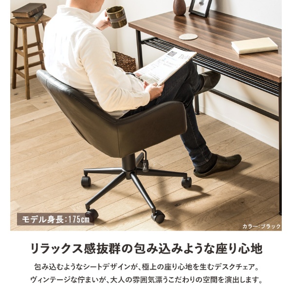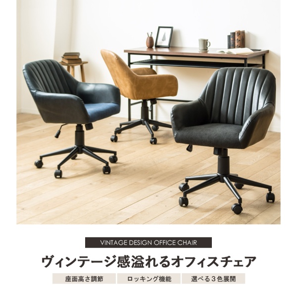 デスクチェア おしゃれ オフィスチェア キャスター付き キャスター付き チェア レザー 合皮 布 昇降 回転 椅子 ヴィンテージ ブラック