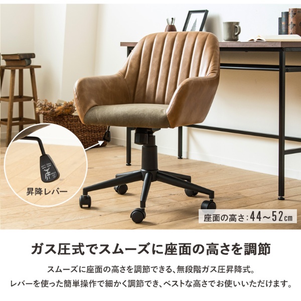 ヴィンテージ風のデザインがお洒落なSOHOデスクシーンを演出するオフィスチェア。