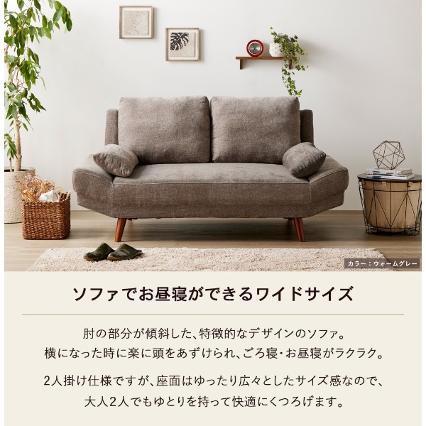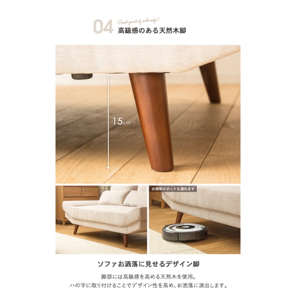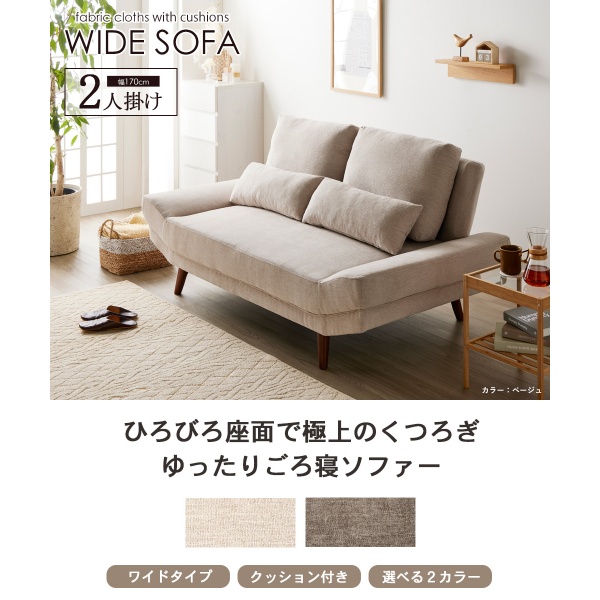 ソファ 2人掛け 北欧 おしゃれ ソファ 座面 広い アームレスソファ 2人 ワイド ソファベッド ローソファー 脚付き ローバック ベージュ