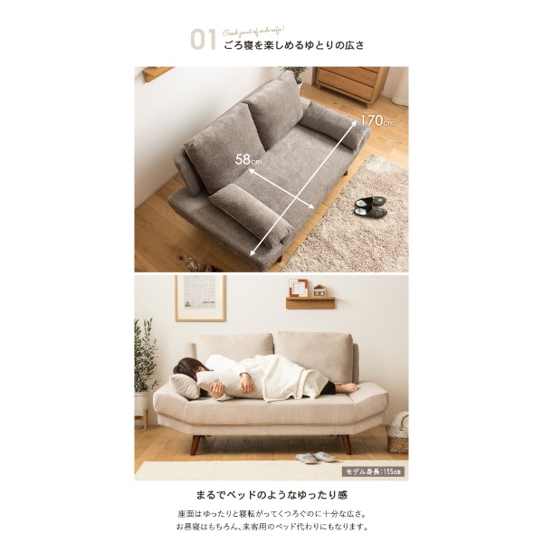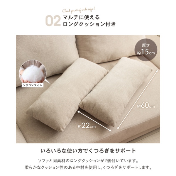ソファサイズ:2 〜 2.5人掛け(100 〜 170cm)