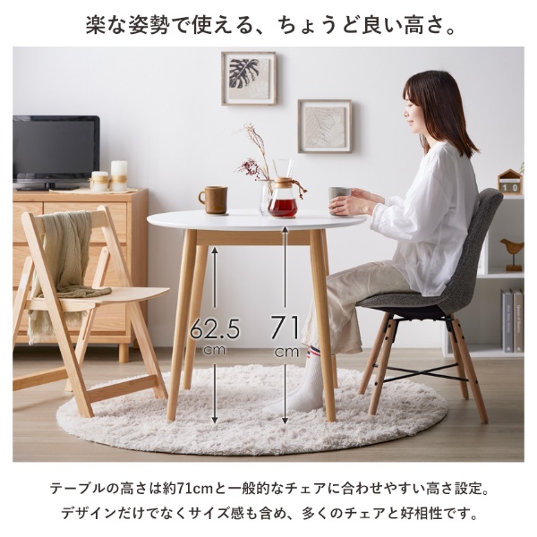 ダイニングテーブル 円形 おしゃれ 円卓 2人用 木製 ダイニング 丸テーブル ラウンドテーブル 省スペース 丸型 丸形 食卓 天然木 ホワイト