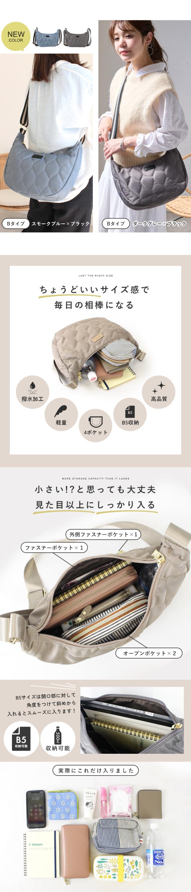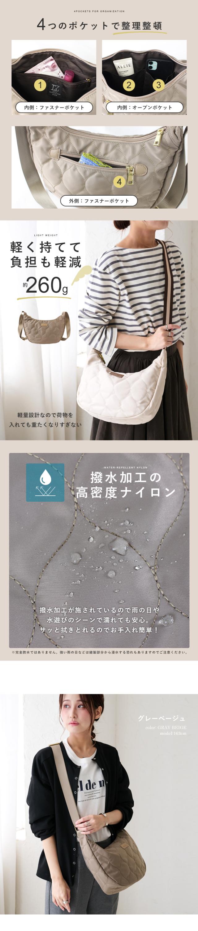 ナイロン ショルダーバッグ レディース 斜め掛け 軽量 ショルダー キルティング 撥水 ナイロンバッグ 大容量 B5 ファスナー おしゃれ LIZDAYS リズデイズ 大人 ワンショルダー カバン 肩掛け 舟形 半月型 ハーフムーン シンプル お出かけ【lz-70510】