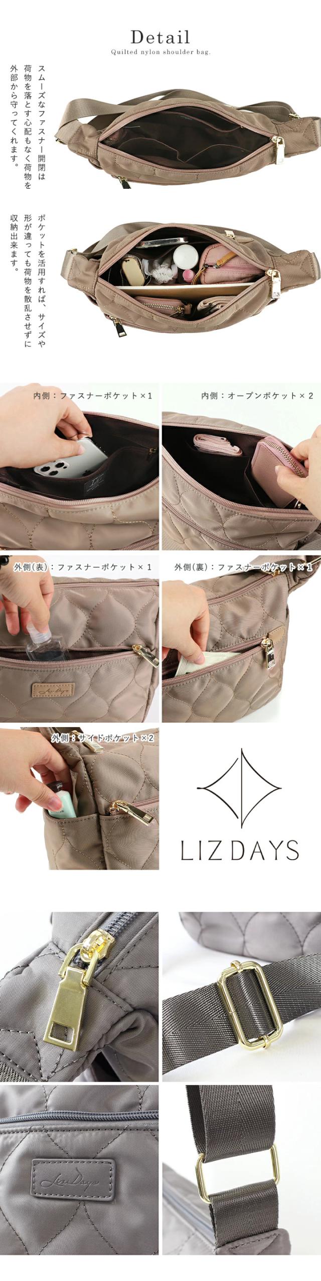 ナイロン ショルダーバッグ レディース 斜め掛け 軽量 軽い ショルダー 撥水 ナイロンバッグ おしゃれ LIZDAYS リズデイズ 大人 肩掛け カバン キルティング ワンショルダー B5 ファスナー シンプル 上品 便利 お出かけ【lz-70511】
