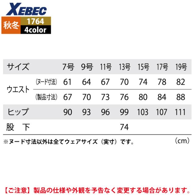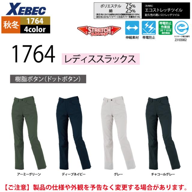 ジーベック XEBEC 作業服 1764 レディススラックス 15号 秋冬用 作業着