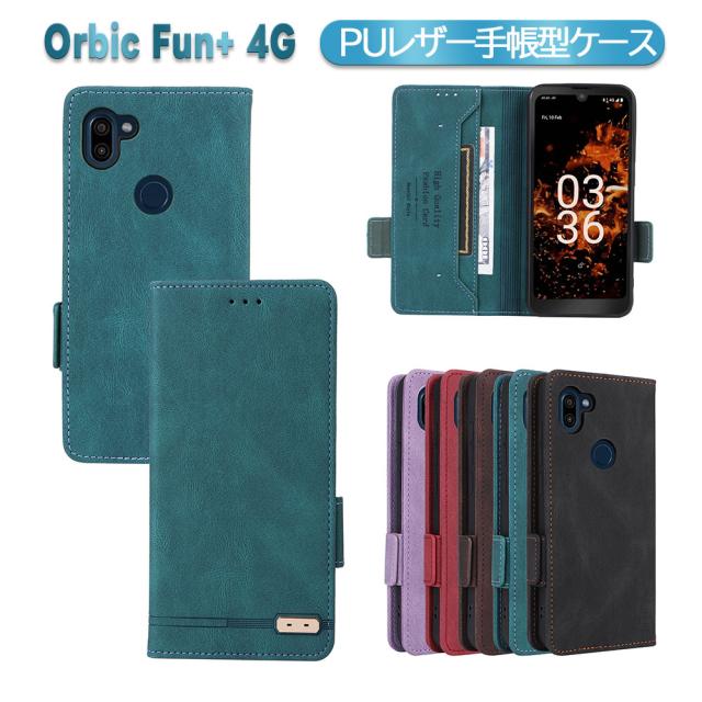 オルビック Orbic Fun+ 4G スマホケース PUレザーカバー 手帳型 マグネット開閉 ベルト カード収納