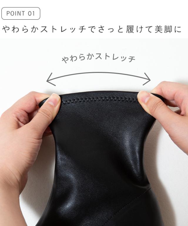 さっと履けて即美脚、足の動きにぴったりフィットするストレッチブーツは、細いフォルムが特徴です。