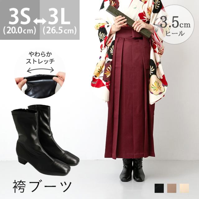 ブーツ 袴ブーツ ショートブーツ 卒業式 成人式 レディース 大きいサイズ 足が疲れない ストレッチ 柔らかい ミドル丈 白 黒 冬 送料無料