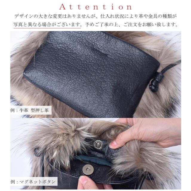 | 素材 | 外側:リアルファー(タヌキ)牛革 紐:合皮 内側:生地 |