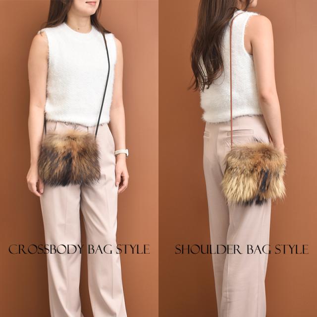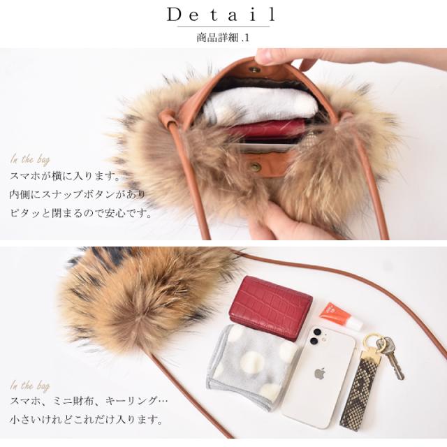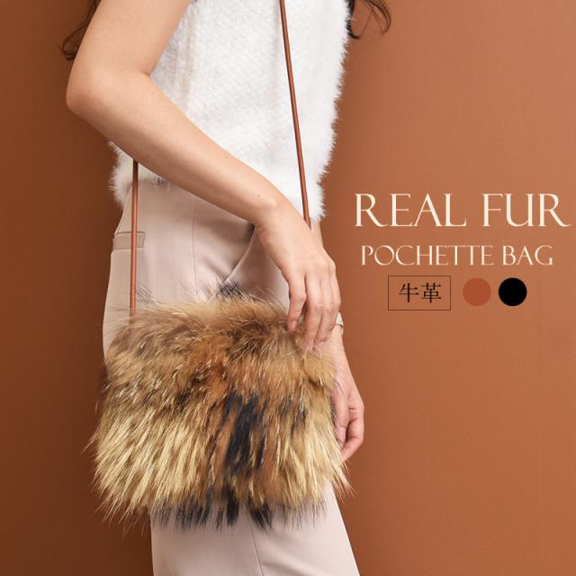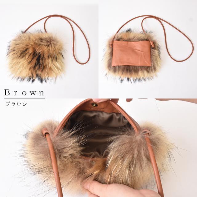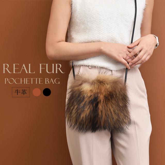 リアルファー ポシェット レディース ミニ ショルダーバッグ 小さめ 斜めかけ 秋冬 毛皮 たぬき ラクーン 牛革 レザー ブラウン ブラック スマホショルダー スマホポシェット ミニショルダー 旅行 大人 女性 人気 母の日 プレゼント ギフト 送料無料
