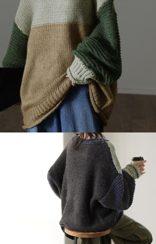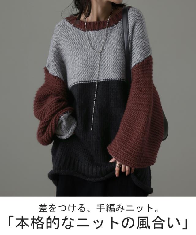 - 手編みざっくりニット