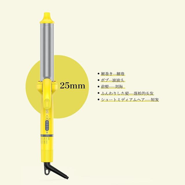 【マイナスイオン&遠赤外線】:コテはセラミック材質を採用し、急速に均一に熱を伝達し、3000万マイナスイオンと遠赤外線の作用の下で。髪のダメージを減らし、髪質のケアやツヤ感を上手にプラスします。ショートカットや前髪のニュアンスカールはシリーズのコテ25mmがおすすめです。