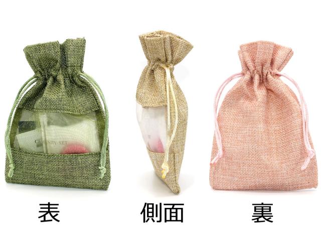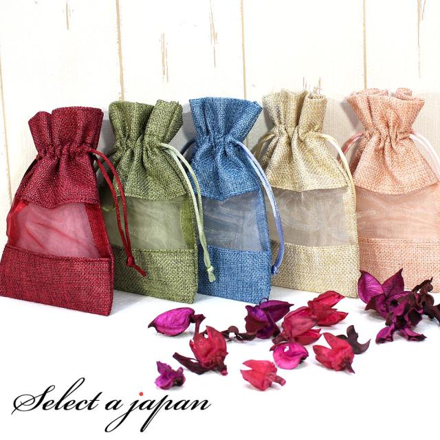 『10個』 巾着袋 (11cm×16cm) 麻布×オーガンジー ラッピング 包装 巾着ポーチ 小物入れ 赤 ピンク ベージュ 緑 青 レッド グリーン ブルー マスク入れ マスクケース 持ち運び おしゃれ かわいい 折りたたみ 携帯 ラッピング材 プレゼント ギフトバッグ 梱包 包装 贈り物